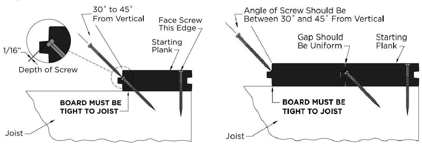 Porch contractor/installation tip: Proper joist spacing is required for secure installation. Joist spacing should never exceed 16" on center. For a more rigid feel, 12" spacing is ideal.