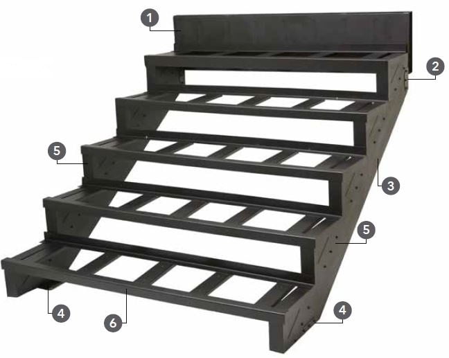 Eliminate time and headaches with this innovative solution. The steel stair system components and brackets work with Evolution joist and beams to provide quick, easy assembly, dramatically decreasing installation time! The stair system's Black Sand powder coat delivers an aesthetically pleasing modern look on its own. Or, use it with fascia/trim for a more traditional look.