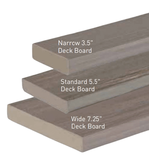 Size availability varies by collection. Use the guide below to learn more about sizing options and locate the perfect composite deck boards for your project.