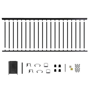 Option 1. NUVO railing sections (Horizontal and Stair) are available in kits. Each kit includes mounting brackets, screws and square balusters (15 for 6' section and 20 for 8' section). Kit needs to be assembled while installing.