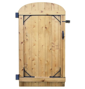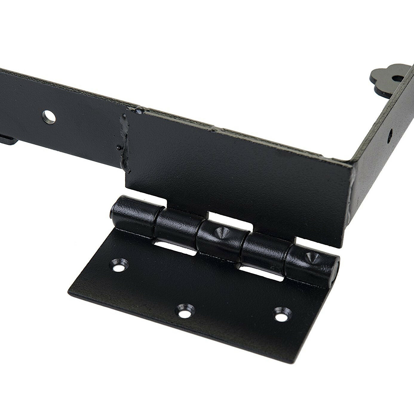 Galvanized Steel. Powder Coated Black. Wood is not included in the kit. Create a sag-free, strong & durable, square cornered gate in minutes! Left or right opening. Easy to install. Hardware included.