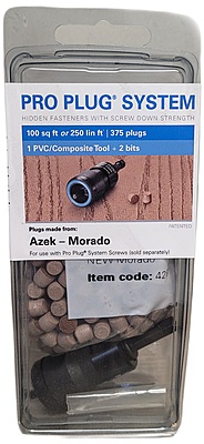 - Pack covers 100 sq.f. surface375 plugs & Composite and PVC tool